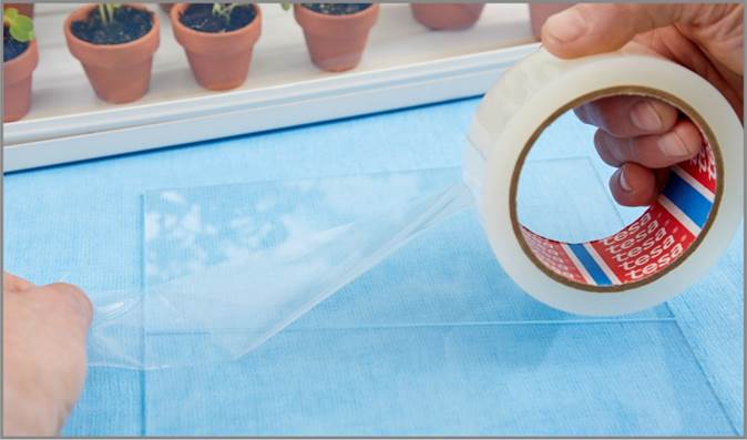 durchsichtigen Flächen wie Fensterscheiben, Glas oder Kunststoff eignet. Produktmerkmale • Transparentes Gewebeband mit sehr guter