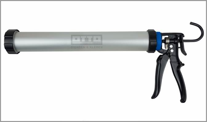 H600 Eigenschaften - Handpress-Pistole mit drehbarem Aluminium Zylinder - Für bis zu 600 ml Alu-Folienbeutel und 280/290/300/310 ml Kartuschen - Profi-Qualität - Für mittel- bis hochviskose Acrylate, Hybride, Polyurethane und