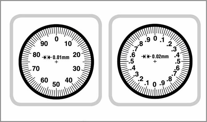 Aus rostfreiem Stahl, gehärtet 4-fach-Messung Geschützter Mechanismus Ziffernblatt-Nullstellung möglich in jeder Position Feststellschraube Art. 2055100230: 1 Umdrehung = 1 mm Ablesung 0,01 mm Art. 2055100240: 1 Umdrehung = 2 mm Ablesung 0,02 mm